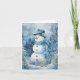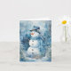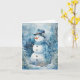 Cute Snowman Blue Hat & Scarf Flowers Trees Blank Card