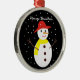 Cute snowman custom Christmas ornament featuring an adorable snowman with red hat, yellow scarf, button eyes and sticks.