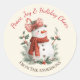A whimsical snowman wearing a gingham bow, red scarf, and winter hat is surrounded by festive holly, pine sprigs, and berries, making it the perfect finishing detail for all your seasonal surprises. The bottom features your family name or custom signature for a thoughtful, personal touch.