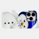 Cute snowman wearing a blue ski cap, is featured on this Apple iPhone 14 pro case. This phone case gives access to all ports, controls and sensors. Glossy finish and printed in the USA. A great gift for Christmas, Birthdays, Graduations and more!