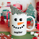 This custom snowman mug makes the perfect personalised Christmas gift. It features a cute snowman face with your name. This hot chocolate or coffee mug is perfect for your children, grandkids or friends. Give as a secret Santa or office gift.