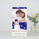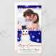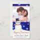 Customise this adorable "Merry Christmas" photocard with your own photo and family name! Design features a cute baby snowman in a top hat, with rosy cheeks and a red and white scarf, reminiscent of a candy cane. Snowflakes add a decorative wintry touch.