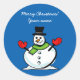 Cute snowman Merry Christmas custom Holiday favour Classic Round Sticker