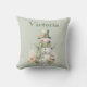 Soft green background with cute watercolor snowman with pastel green scarf & hat. Pretty coordinating flowers & faux snow create a sweet design on this adorable pillow. A perfect holiday gift for that hard-to-buy-for person in your list.
