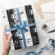 cute snowman smiling black and white christmas wrapping paper