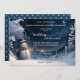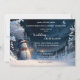 Wedding invitation featuring a dreamy winter wonderland scene with a cute snowman. Beautiful for a winter wedding or also a Christmas wedding.