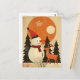 Cute Snowman with Reindeer Retro Mid-Century Xmas Postcard
