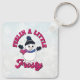 Keychain with beautiful illustration of a snowman with scarf in bisexual flag colours.