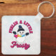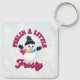 Keychain with beautiful illustration of a snowman with scarf in pansexual flag colours.