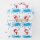 Cute Snowman with Snowflake Kids Name Holidays Wrapping Paper Sheets. Cute smiling snowman with a snowflake on his nose. The background is a blue splash. Add your name.