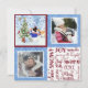 Adorable Snowman and his woodland animal friends decorate a Christmas tree in a snowy forest. A deer, owl, rabbit, hedgehog and red Cardinal bird help celebrate the holiday. Typography text word art conveys much of what gives us joy in this season. Two family photographs can be personalised along with your personal message on the reverse side. Give a card that will be treasured as a keepsake forever! Created by internationally licensed artist and designer, Audrey Jeanne Roberts ©.