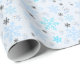 Cute snowmen and snowflakes in light blue wrapping paper