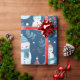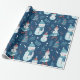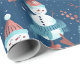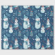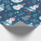 Cute Snowmen Greenery Snow Blue Christmas Wrapping Paper