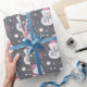 Add a touch of charm and sophistication to your holiday gifts with this adorable grey Christmas wrapping paper. The soft grey background creates a modern and elegant base for a playful pattern featuring cheerful snowmen, delicate falling snow, and lush pine leaves. This design brings a unique and contemporary twist to classic holiday wrapping.