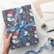Cute Snowmen Greenery Snowflakes Blue Christmas Wrapping Paper