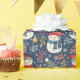Delicate snowflakes and colourful Christmas ornaments add a magical, wintry element, perfectly complementing the cheerful snowmen and natural accents. The rich greens, pops of red from the berries, and bright ornaments stand out beautifully against the blue backdrop, creating a design that feels both festive and contemporary.