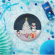 Winterly and festive graphic illustration featuring two cute snowmen decorating the Christmas tree with candy canes, christmas lights and a star tree topper.