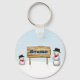 Winterly graphic illustration featuring two cute snowmen holding a wooden sign in a snowy environment. Customize this product with your own name.