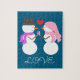 Cute Snowpeople in Love- dark turquois: Jigsaw Puzzle