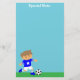 This cute stationery is great for boys who are soccer fanatics or a football superstar! It comes with a cute boy in a trendy blue soccer jersey with star, white stripes on the sleeves, white shorts and matching blue football boots complete with studs getting ready to kick a soccer ball for goal! Text reads "Special Note:" which you can personalise with the child's name or message.