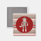 Cute Sock Monkey on Red Circle Red Brown Stripes Magnet