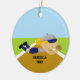 This is an adorable Christmas ornament for that softball player in your life! It's an adorable baseball player laying in the field catching a baseball. She's wearing a blue and grey uniform. You can personalise with name and year, Check out the many other designs and colours in this line.Cherish this keepsake for many ,many years! ©JW Illustrations