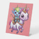Cute Space Alien riding unicorn funny UFO Pedestal Sign