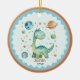 Cute space dinosaur holiday keepsake personalised ceramic tree decoration