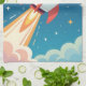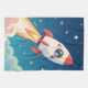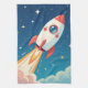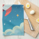 Cute space rocket blasting off tea towel