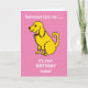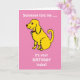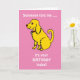 Pink card with cartoon type image of a cute happy dog with the words 'Someone told me ... it's your birthday today'. Inside the card reads 'Have a lovely birthday'. Easily personalise this card by editing the template text. Thanks for viewing my designs.