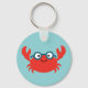 A happy bespectacled crab mascot with big eyes. He is posing with his big claws up in the air, but is very friendly and cute. His likes wearing big stylish eyeglasses because this gives him a unique look and style, so he might be a modern hipster crustacean.