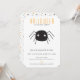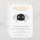 Cute illustrated spider, Halloween costume party invitation. Trendy typography design style template text with colourful pattern backing.