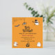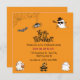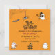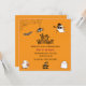 Set the tone for a fun and festive celebration with this spooky-cute Halloween invitation design! The invitation features a delightful arrangement of Halloween favourites, including a cute ghost holding a pumpkin, a playful flying bat, a spider dangling from a delicate spider web, and a cheerful floating ghost with the word "Boo" beside it. The vibrant "Happy Halloween" text is complemented by a whimsical witch's hat and two colourful sweets, creating a fun and inviting look. Fully customisable, this invitation allows you to effortlessly add details like the date and time, venue, and RSVP contact information. Perfect for Halloween parties for kids or adults, this charming design will get everyone excited to join in the spooky fun!