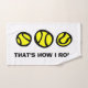 Cute sports hand towel gift idea for tennis player or coach. Tennis humour design with cute tennis ball design and humourous motivational quote. That's how i roll. Fun novelty Birthday presents for tennis enthusiast, best friend, dad, husband, doubles partner, world's greatest coach, trainer, kids, coworker, boss, mum etc. Handy white towel for on court during long matches. Personalised yellow tennis ball print. Add your own name in small letters below the slogan optionally.