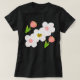 Charming T-shirt design featuring soft white flowers, pink tulips, and a sweet little bee. A fresh and cheerful look perfect for spring and everyday wear.