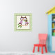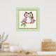 Cute spring owl on a branch poster print, featuring a cute spring owl in purple and dark brown holding a flower in her beak (bill) on a branch and green plaid border. An adorable design for owl lovers perfect for nursery décor. Artwork by Trina Clark.