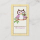 Cute spring owl on a branch, yellow plaid border business card