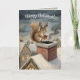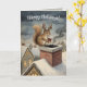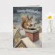 Cute Squirrel Playing Santa Drawing Christmas Card