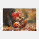 Cute Squirrel with a Leaf Umbrella - Autumn Rain Doormat