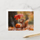 Cute Squirrel with a Leaf Umbrella - Autumn Rain Postcard
