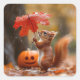 Cute Squirrel with a Leaf Umbrella - Autumn Rain Square Sticker