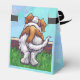 Animal Parade Cute St. Bernard Dog Favour Box created by Imagine That! Design features our cute tan and white dog character standing in a grassy yard with a red brick fence, a textured blue sky and a playful wavy purple border painted by our talented children's book artist, Traci Van Wagoner. The fun pup stands in play position with one paw raised. This fun pet art is perfect for St. Bernard dog lovers and humourous animal art lovers of all ages. On many of our whimsical St. Bernard doggy products you'll find this cute puppy coming and going with the playful Saint Bernard dog's head on one side and the funny dog's tail on the other. Join the Animal Parade and bring a smile to the face of someone you love with a gift of our cute St. Bernard dog. Woof!