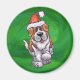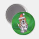 Cute St. Bernard in Santa Hat on Green Magnet