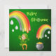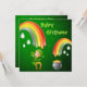 Cute St.Patrick's Day neutral green Baby Shower invites for boys or girls with an adorable baby leprechaun elf sitting on a lucky horseshoe holding a shamrock under a pretty colourful rainbow and raindrops. There is another rainbow and raindrops next to him and underneath it is a pot of Irish gold. The beautiful green background has elegant swirls and flourishes and lucky four leaf shamrocks / clovers. These fun stylish invites are decorated both sides. Text, font and colour of font are all customisable. If you need assistance customising your product please contact me through my store and I will be happy to help.