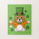 Cute St Patrick's Day Cat with Shamrocks Cartoon Jigsaw Puzzle