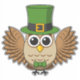 An illustration of a cute kawaii owl wearing a green top hat and a papillon for Saint Patrick's Day. This cartoon design is a gift idea for bird lover and animal lover. Feel lucky everyday.