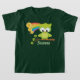 Adorable St. Patrick's Day kids t-shirt for an Irish girl featuring a cute green owl and beautiful rainbow with pot of gold. Customise with your child's name in green.