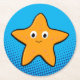 Cute Starfish Drawing Blue Ocean Round Paper Coaster