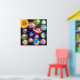 Really cute colourful planets with happy faces set against a starry backdrop.