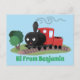 This happy steam train is puffing along the countryside. Drawn in cute animated illustration style. Locomotive fun!